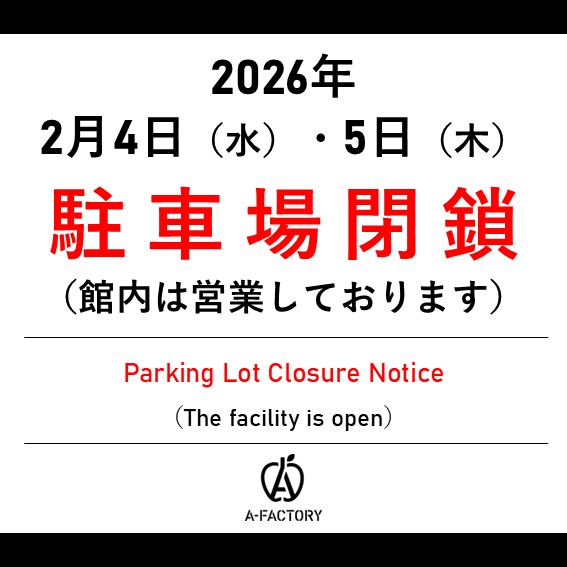 We regret to inform you that, due to the risk of falling ice and snow as well as deteriorated road conditions caused by heavy snowfall, the A-FACTORY parking lot will be temporarily closed from Wednesday, February 4, 2026 to Thursday, February 5, 2026 for safety reasons.